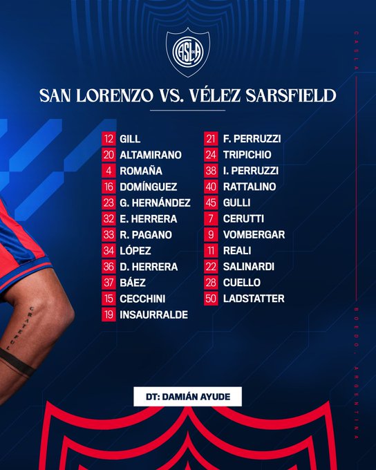 Luego del último entrenamiento de este miércoles en la Ciudad Deportiva, San Lorenzo dio a conocer la nómina de jugadores convocados para el partido ante Vélez, que se jugará este jueves desde las 19 en el Nuevo Gasómetro, por la cuarta fecha del Torneo Clausura. Fue el cierre de una jornada en la que Damián Ayude también terminó de perfilar el equipo titular, que presentará variantes respecto al que jugó el último fin de semana.