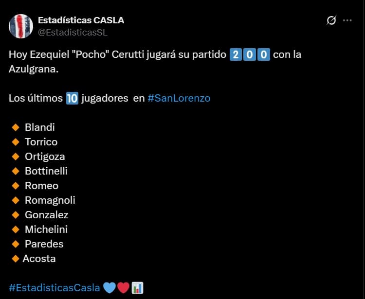 El pasado viernes, en la victoria ante Deportivo Riestra, Ezequiel Cerutti alcanzó una marca muy especial: 200 partidos con la camiseta de San Lorenzo. El Pocho, que fue ovacionado por todo el Nuevo Gasómetro al ser reemplazado, se sumó así a una lista selecta de futbolistas que supieron vestir la azulgrana durante al menos dos centenares de encuentros oficiales.