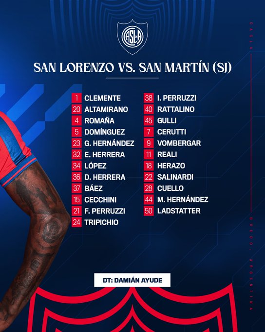 San Lorenzo dio a conocer este jueves por la noche la lista de concentrados para el partido de este viernes a las 14.30 en el Nuevo Gasómetro, donde enfrentará a San Martín de San Juan por la fecha 12 del Torneo Clausura. El equipo de Damián Ayude buscará reencontrarse con la victoria tras la dura derrota sufrida ante Lanús en La Fortaleza.