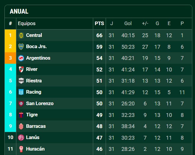 Actualmente el conjunto azulgrana suma 50 unidades en la tabla anual, mientras que Lanús, el primero fuera de zona de copas, tiene 47. Por lo tanto, incluso una igualdad en la última jornada le alcanzará para cumplir con ese objetivo.