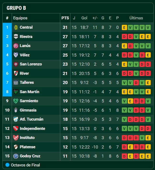 Hoy, el Fortín está cuarto con 25 puntos y San Lorenzo quinto con 23. Si se da esa combinación de resultados, el Ciclón lo superaría por una unidad y jugaría el primer cruce de los playoffs en el Nuevo Gasómetro.